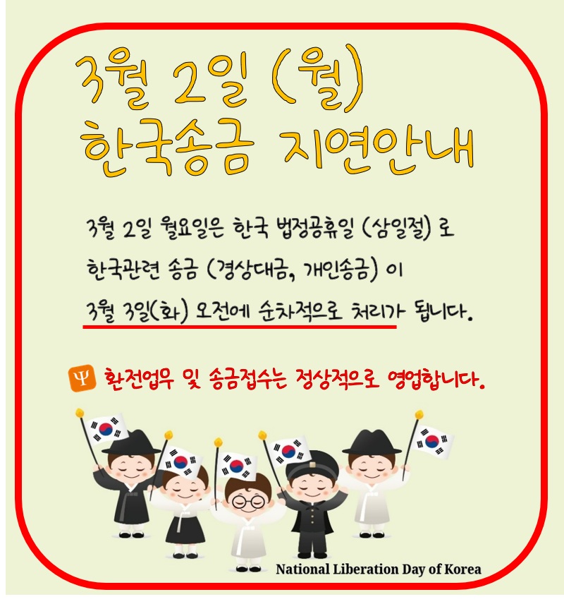 30분 이내에 한국내 수취인 은행계좌에 입금